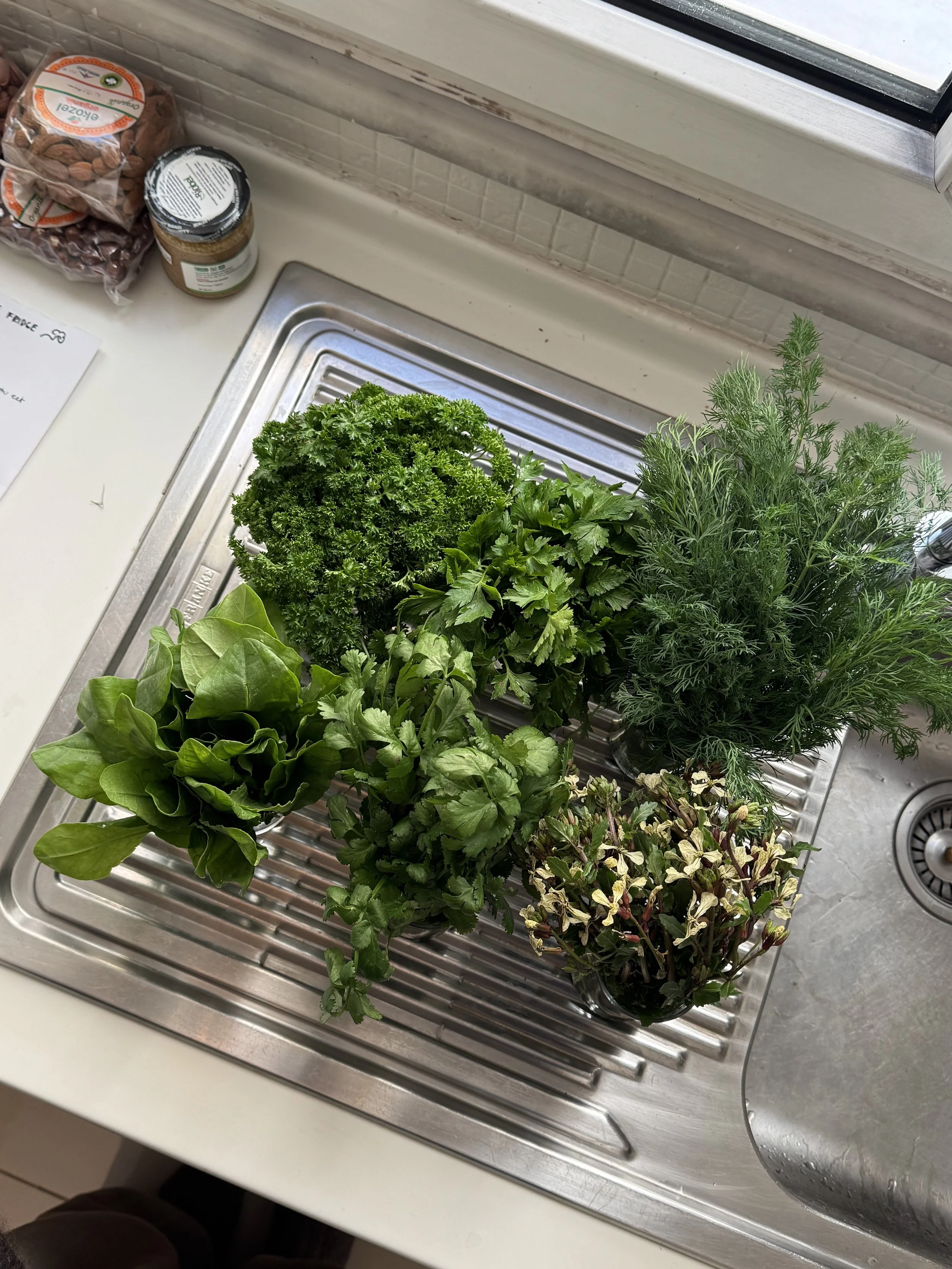 A big handful of fresh herbs (I used coriander, dill, parsley, and mint)